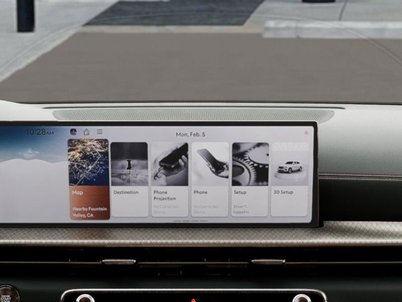 - Radio: AM/FM/HD Bang & Olufsen Sound System -inc: 1400 watts, 18 speakers, 14 channel amplifier, 27" integrated OLED instrument cluster and navigation system, SiriusXM Radio w/90-day subscription (not available in AK or HI), cloud connected platform (cloud profiles, connected routing, dynamic voice recognition, OTA updates), wireless Apple CarPlay, wireless Android Auto, Bluetooth® hands-free phone system w/audio streaming, wireless phone charger, Wi-Fi hotspot, steering wheel controls, USB and Genesis Connected Services