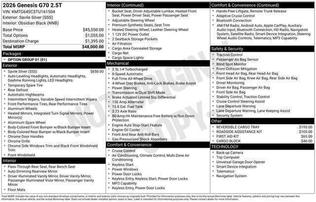 2026 Genesis G70 2.5T